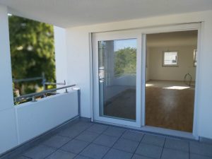 Sie verfügt über einen großen Wohn – Essbereich mit offener Küche und überdachtem Balkon.